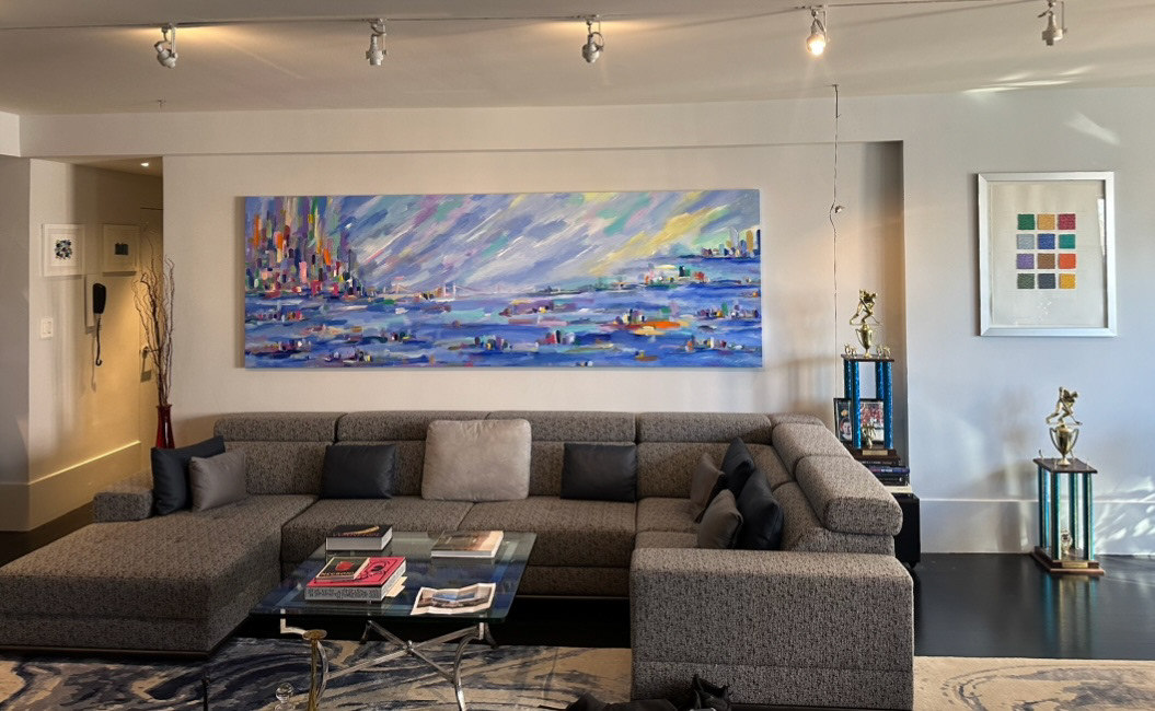 Approaching New York Triptych Acrylic on Canvas (3 panels 40" x 60") Total Size 40" x 180"
