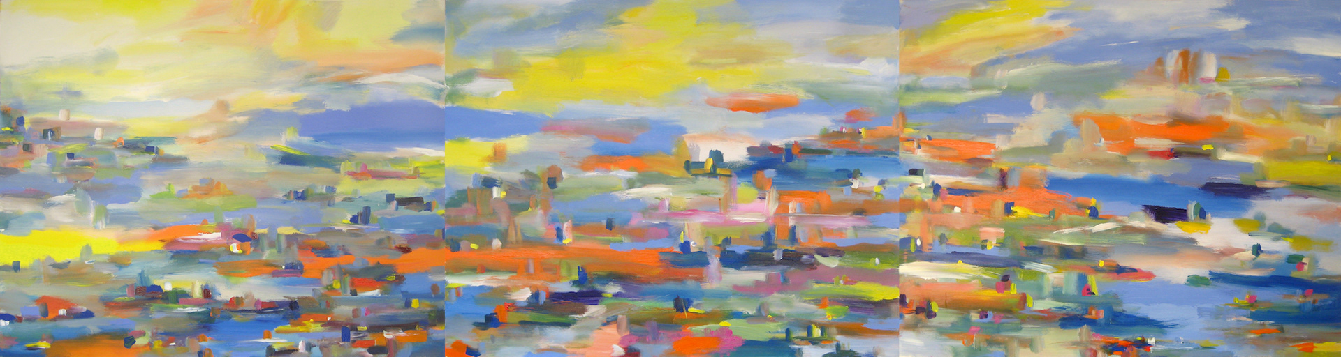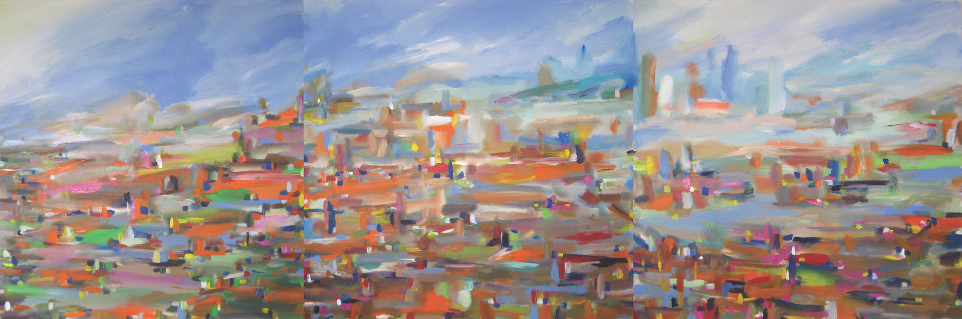Approaching New York Triptych Acrylic on Canvas (3 panels 40" x 60") Total Size 40" x 180"